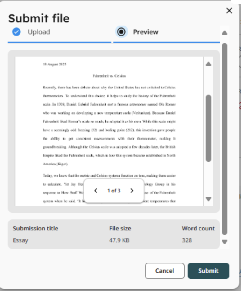 - When the preview has loaded in, verify that your paper is showing up correctly, then click "Submit."