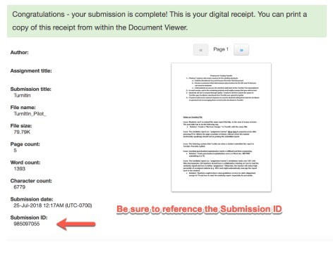 This step is essential to the submission process! To receive credit, you must both submit your paper to Turnitin and enter the Submission ID in the Writer’s Box in Ignitia.